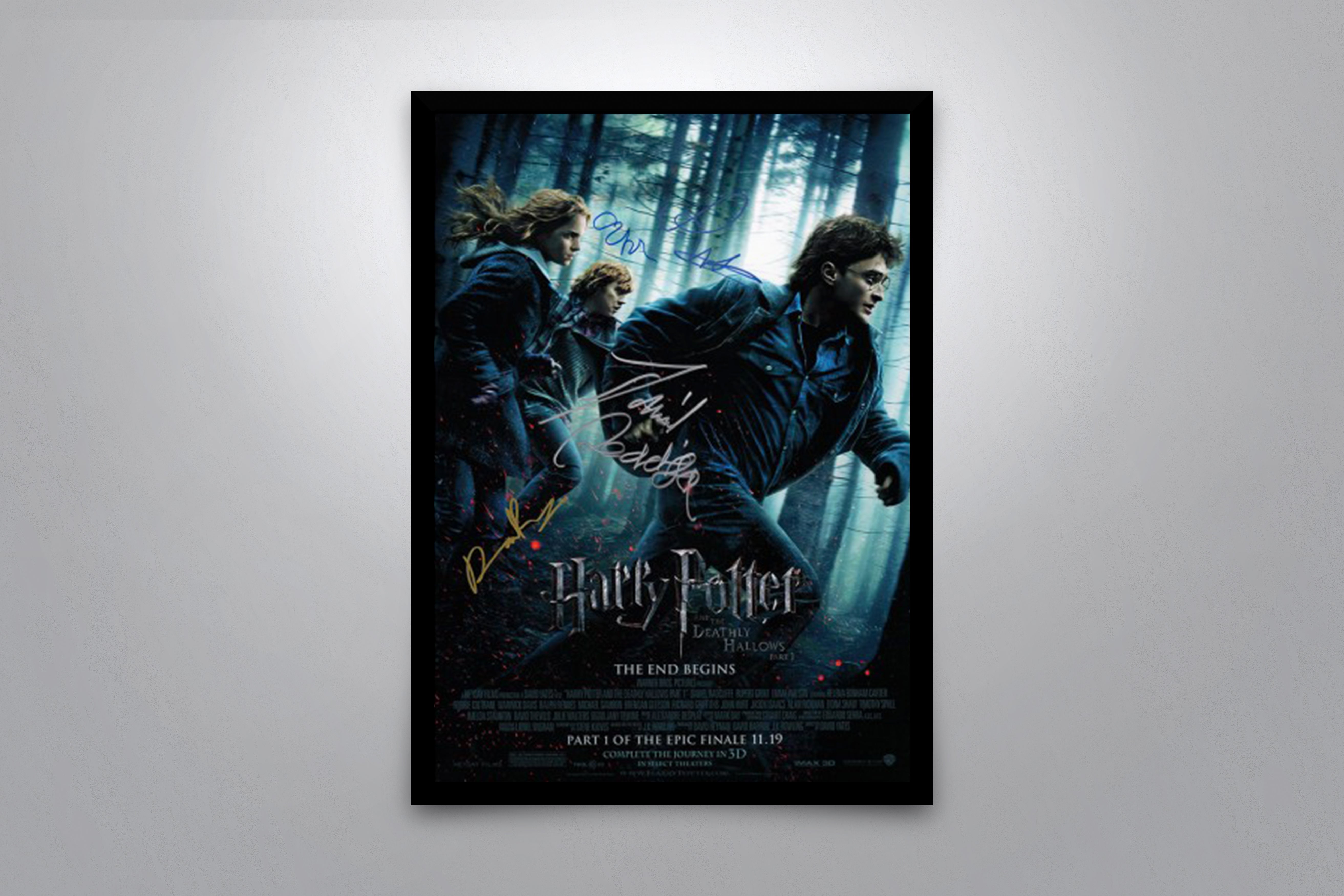 — Hand-Signed by Ralph Fiennes, Daniel Radcliffe, Emma Watson, and Rupert Grint.