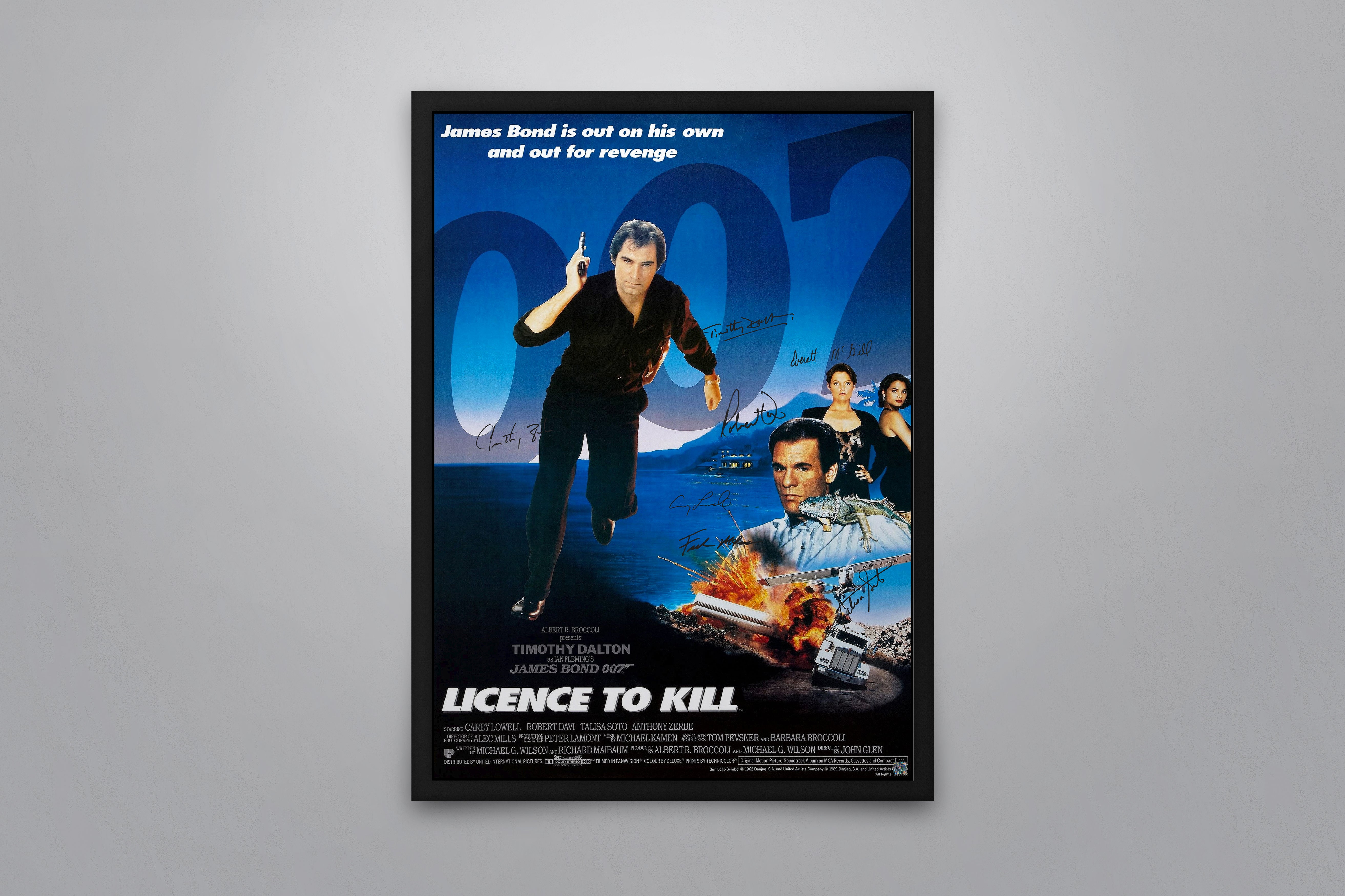 Pay homage to Licence to Kill with this hand-signed poster by the stars.