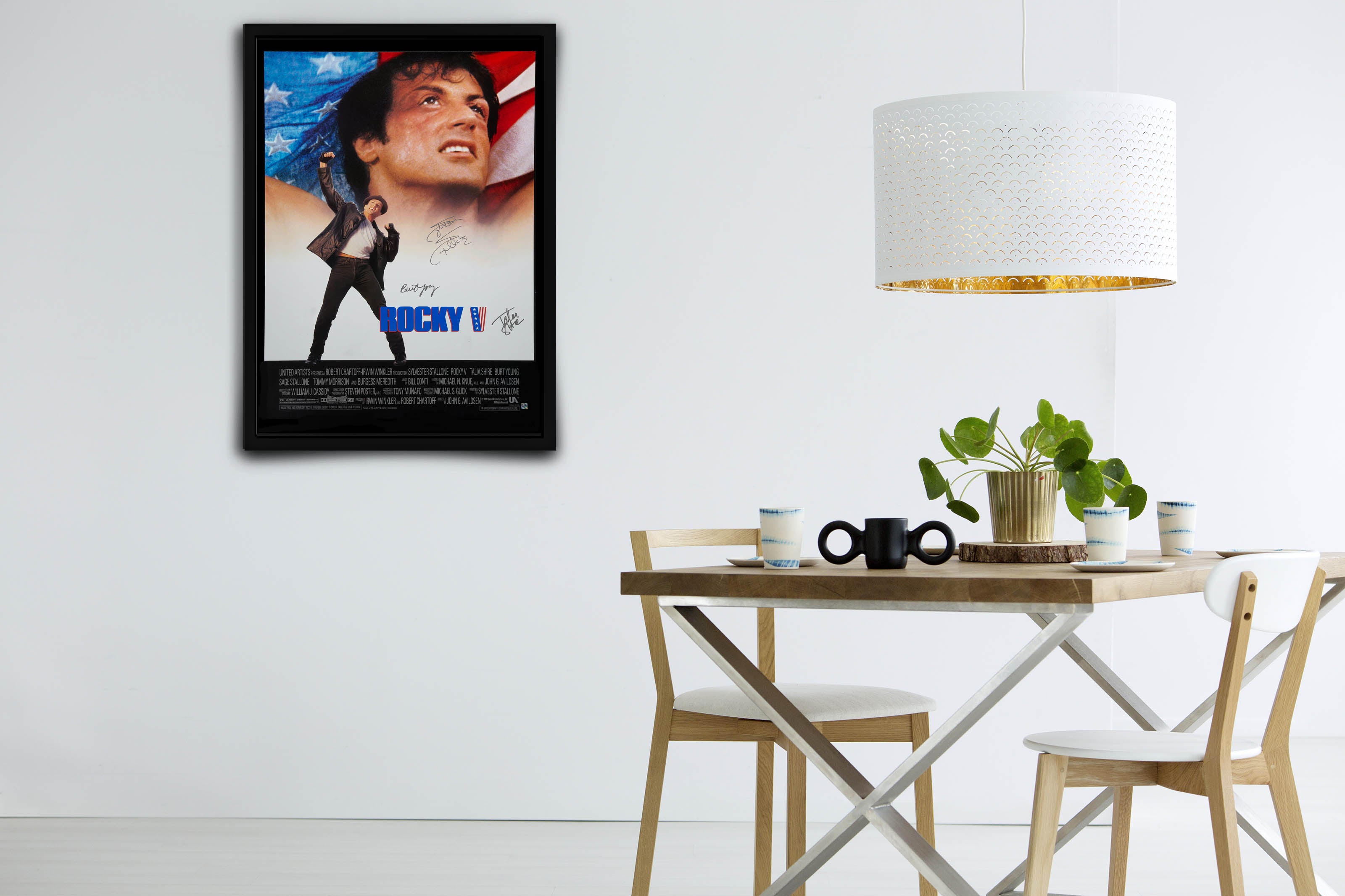 Pay homage to the movie Rocky with this hand-signed poster by the stars.